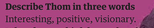 Eyes are a thing, aren’t they? People go wild for them. They’re like the acceptable thing to perv over now openly salivating over someone’s boobs, bum or “package” is no longer the done thing. Anyway, yeah, Thom has nice eyes.